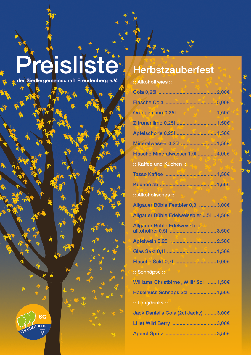 Getränkepreisliste Herbstzauberfest